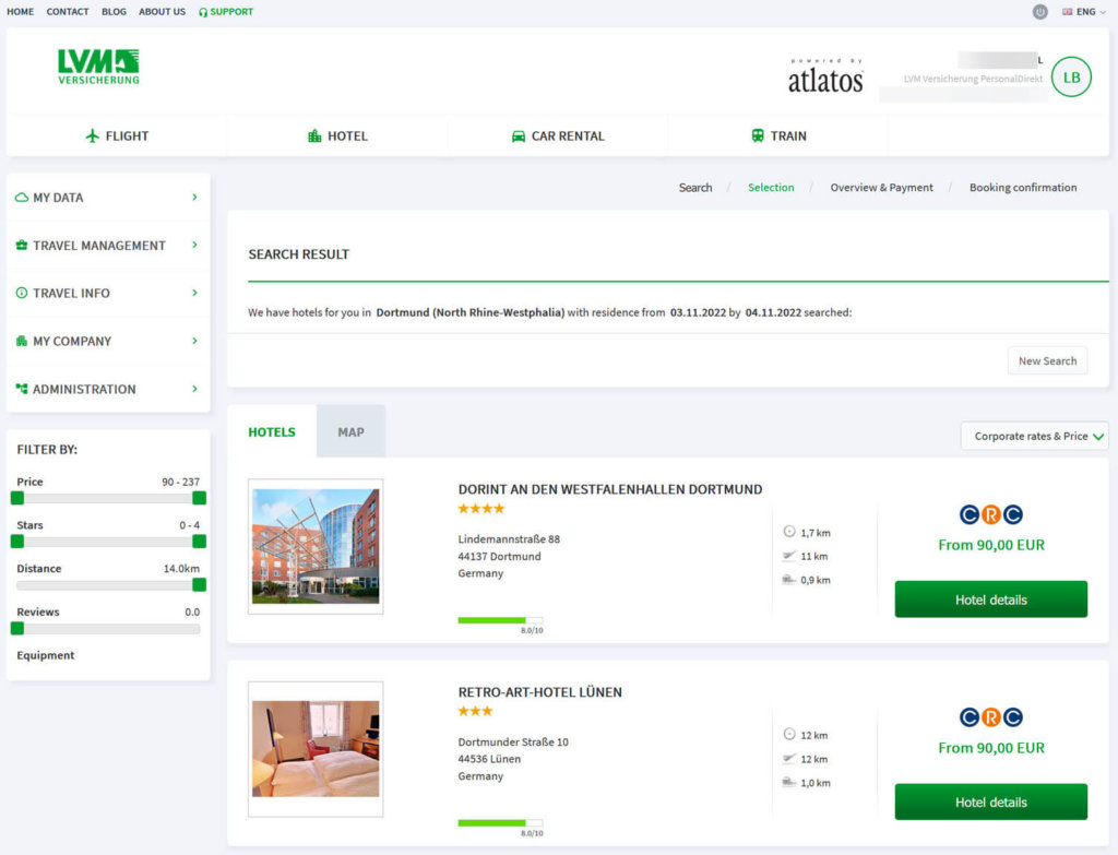 In 2017, LVM Versicherung introduced the Atlatos Profi Traveller online booking engine. In 2018, the online booking engine with travel expense management was also introduced as an the end-to-end process for the subsidiary Augsburger Aktienbank.